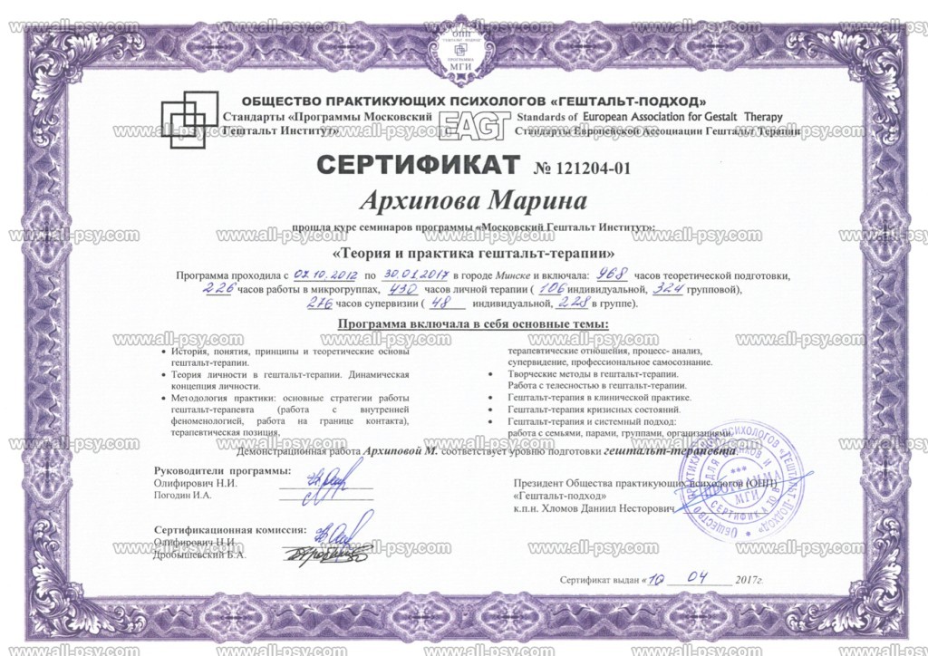 10.2018-05.2021 Программа МГИ «Совершенствование в Гештальт-терапии»