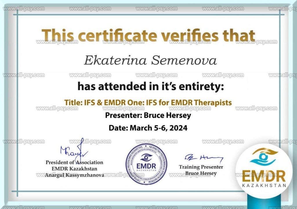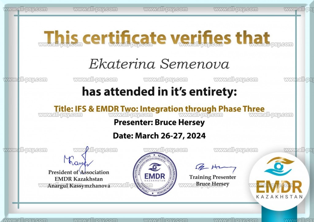 - IFS&EMDR One: IFS for EMDR Therapists (IFS+EMDR 1. IFS для EMDR-терапевтов)