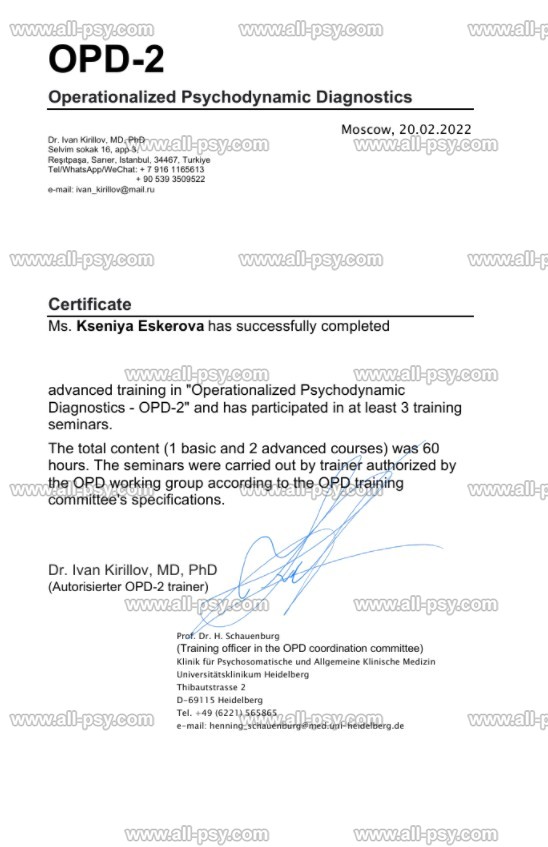 Klinik fur Psychosomatische und Allgemeine Klinische Medizin Universitatsklinikum Heidelberg, OPD-2 trainer - Dr. Ivan Kirillov, MD, PhD