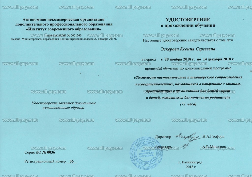 АНОДПО "Институт современного образования" г. Калининград