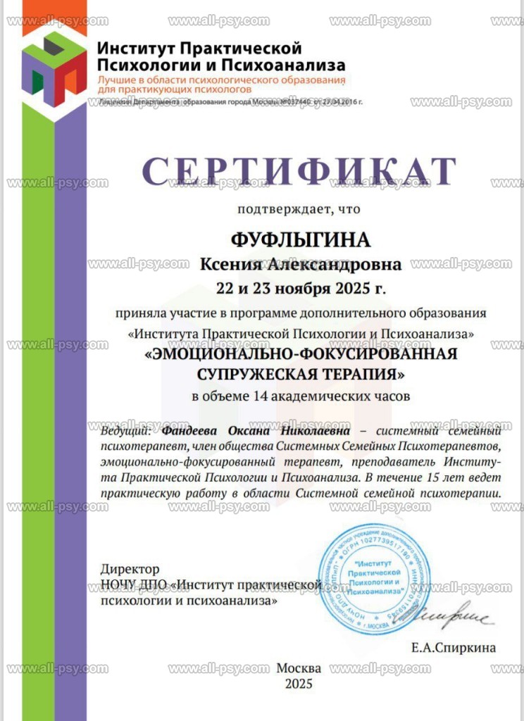 Я системны семейный терапевт со стажем с 2020 года.