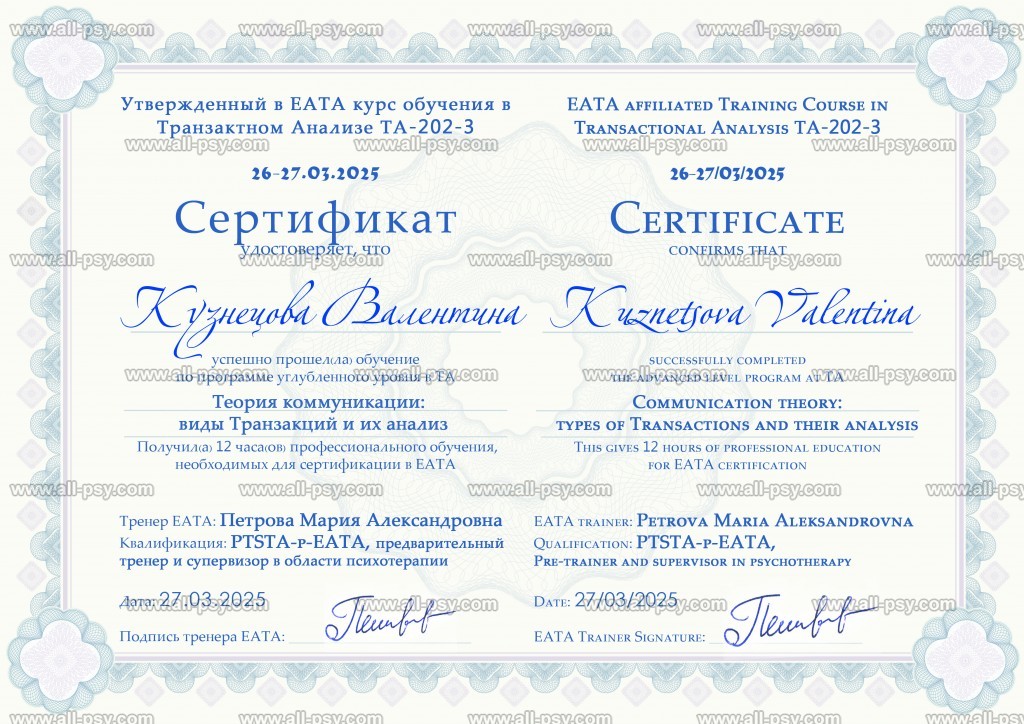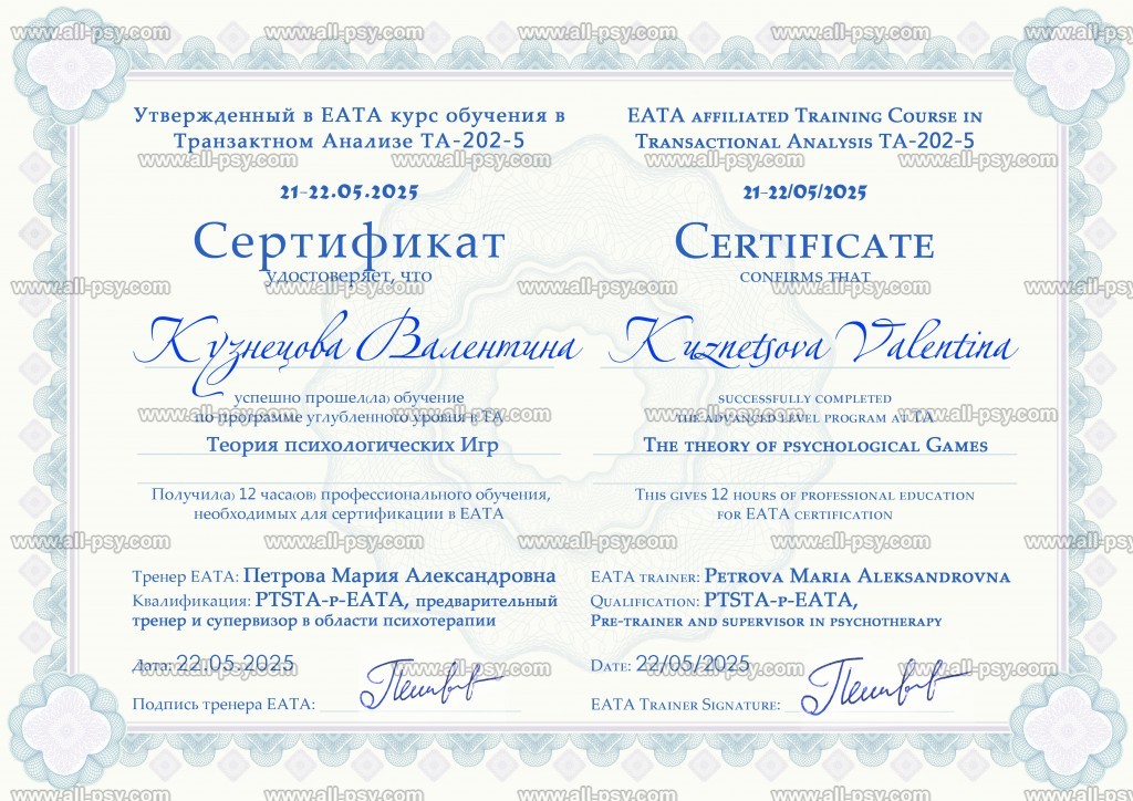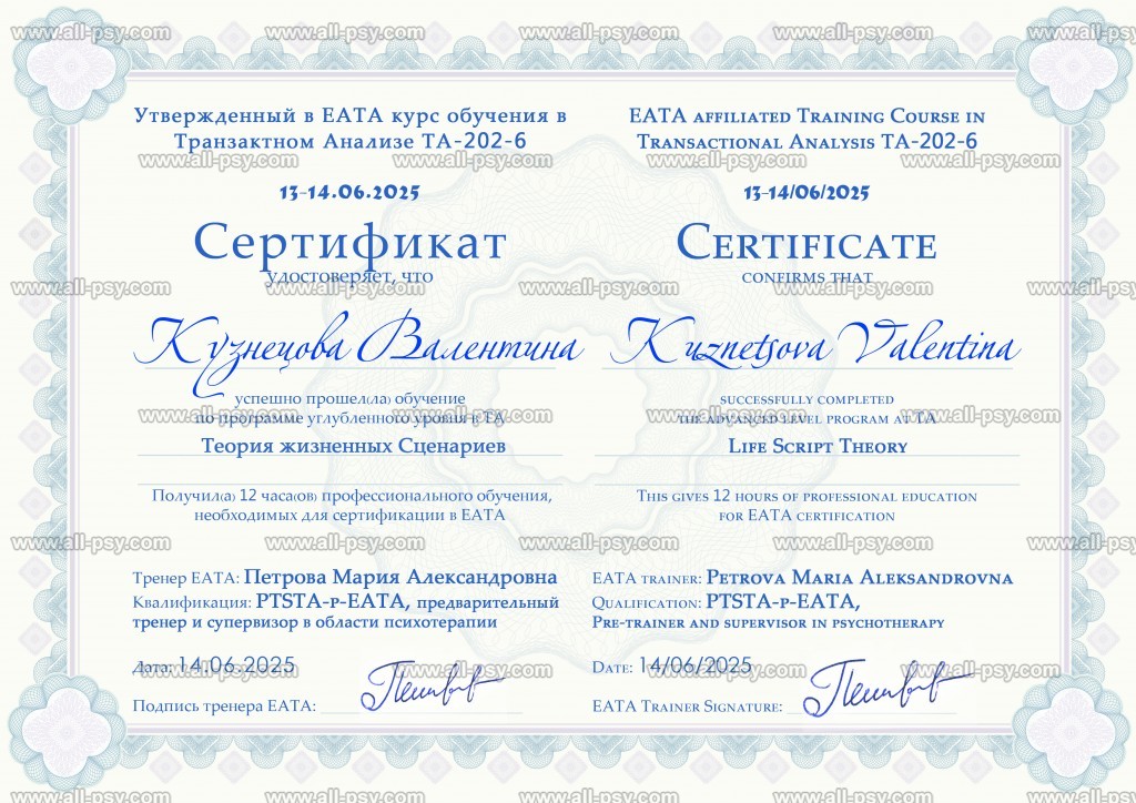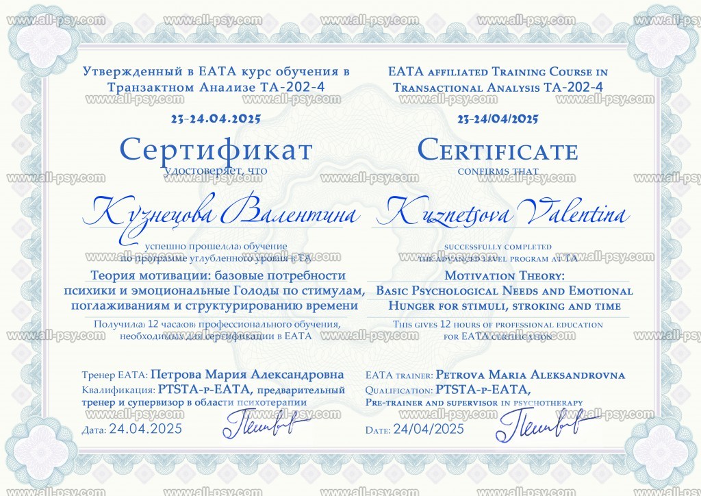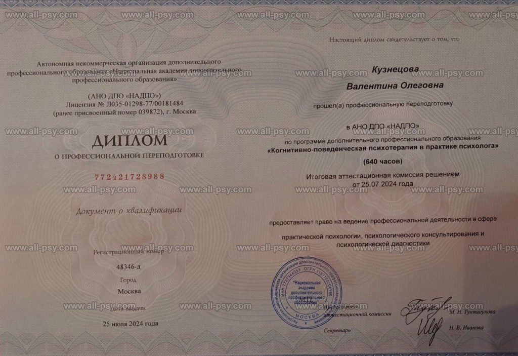 Меня зовут Валентина, я дипломированный клинический психолог, семейный, КПТ-терапевт, работаю в транзактном анализе.