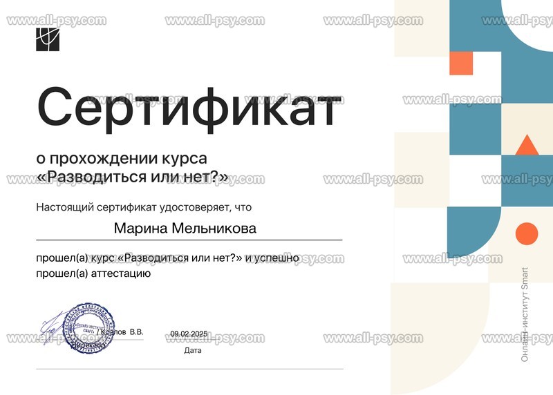 * личный опыт: прожила тяжелый развод, расставание, смогла выйти из созависимых отношений, восстановиться, изменить свою жизнь к лучшему и сохранить прекрасные отношения с бывшим мужем, основанные на взаимном уважении. В 2019 году я смогла кардинально изменить свой профессиональный вектор и посветить себя любимому делу - начать удивительный и многогранный путь психолога. На личном опыте я прожила многие непростые жизненные обстоятельства, что позволяет мне глубже понимать ваши чувства и эмоции.