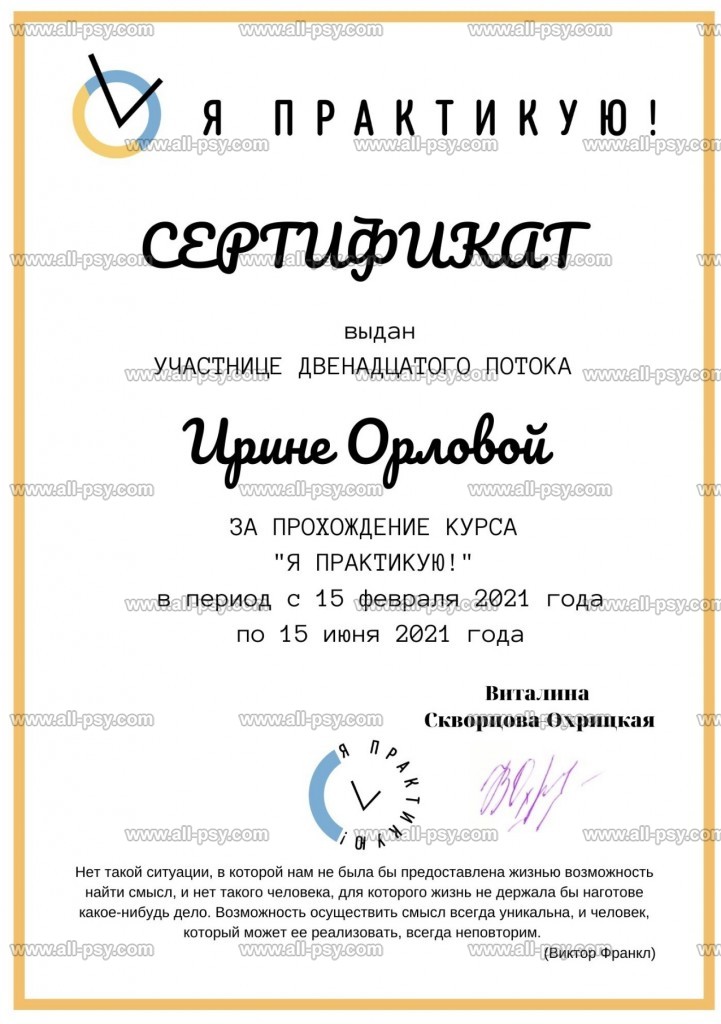 Привет, меня зовут Ирина Орлова и уже более 4х лет я веду свою частную психологическую практику
