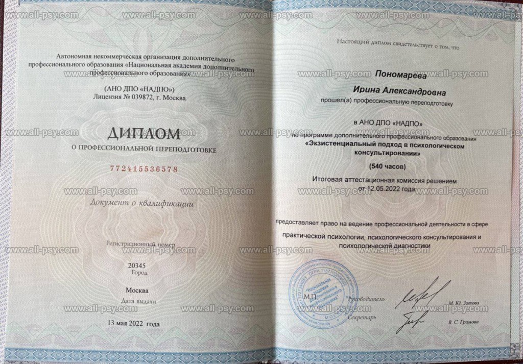 Опыт 6 летПсихолог экзистенциального направления. В работе опираюсь на внимательный диалог и бережное присутствие, чтобы человек мог заметить то, что обычно остается внутри: переживания, тревоги, внутренние противоречия, сомнения, утраты, поиски опоры.