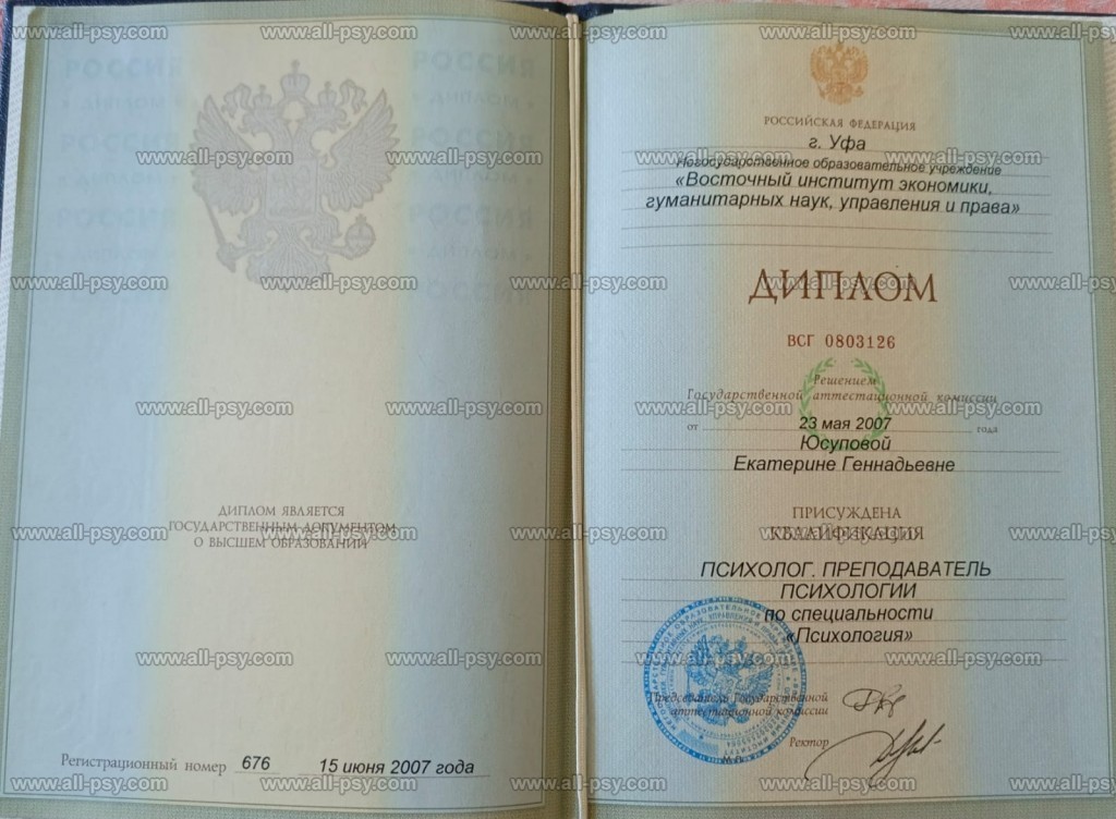 Восточный институт экономики, гуманитарных наук, управления и права, г.Уфа, ВСГ 0803126