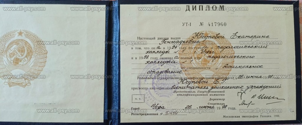 Педагогический колледж №1, г. Уфа, УТ-I № 417960