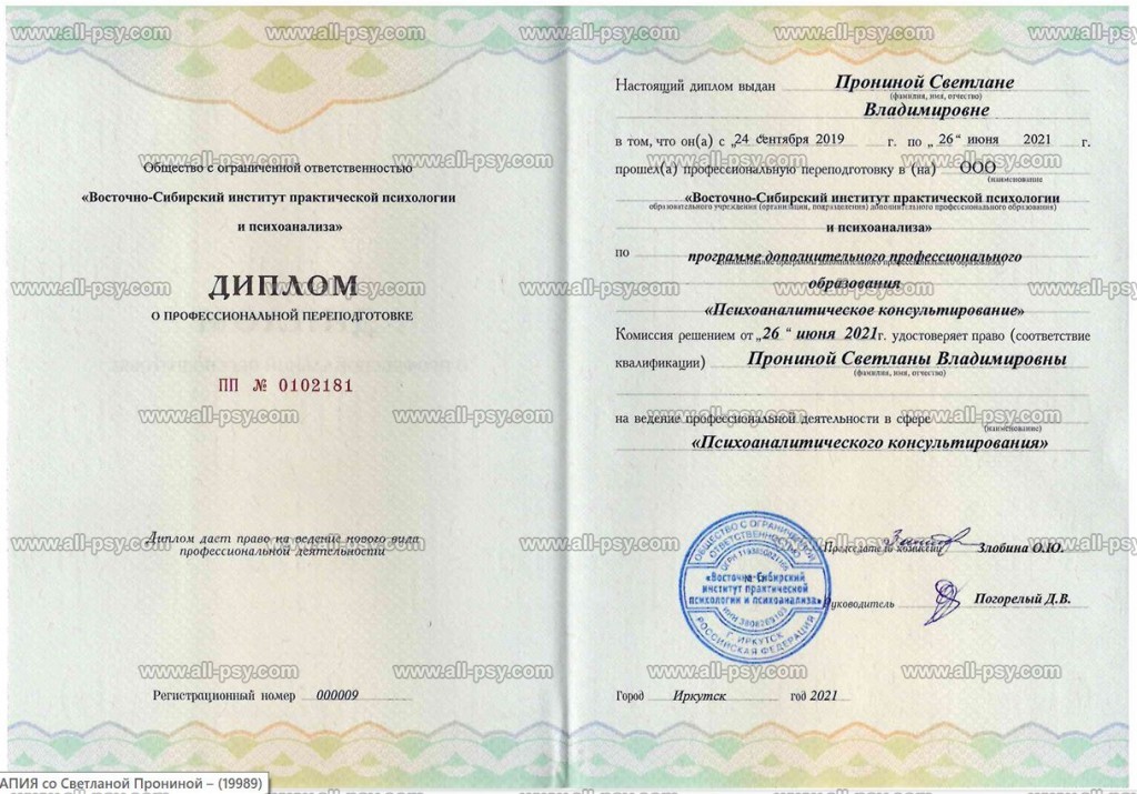 Имею два высших образования (инженерное и психологическое). Ежегодно повышаю свою профессиональную квалификацию.