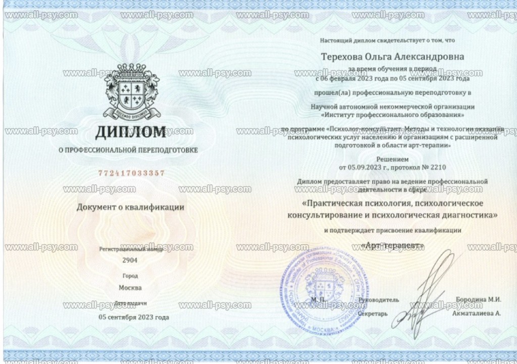 Сертифицированный арт-терапевт (2023 г.).