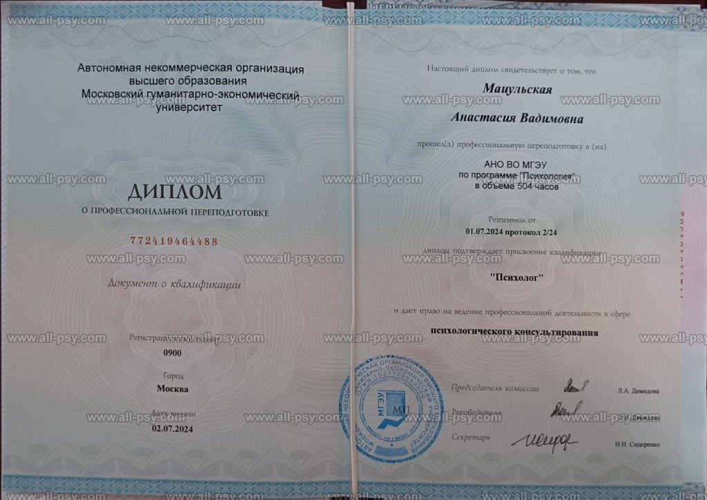 - Программа: дополнительная профессиональная программа повышения квалификации Сфера деятельности: «Сексология в психологическом консультировании»