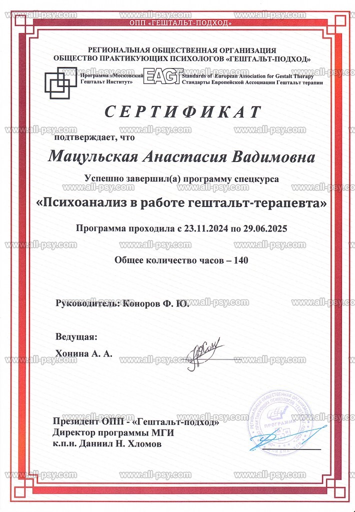 - спецкурс "Психоанализ в работе гештальт терапевта" 2024-2025