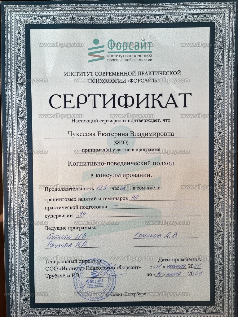 Готова предложить вам профессиональную поддержку и сопровождение на пути к более полноценной и счастливой жизни. Давайте вместе найдем решения, которые работают именно для вас.