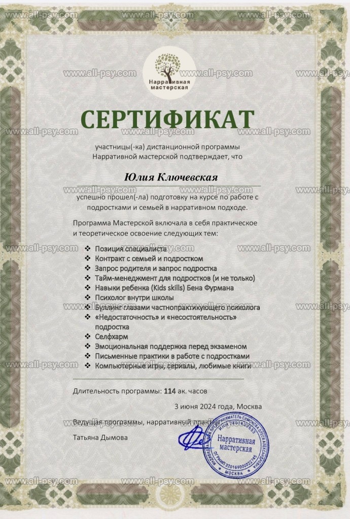 Психолог, IFS терапевт, ЭФТ парный и семейный терапевт, нарративный практик
