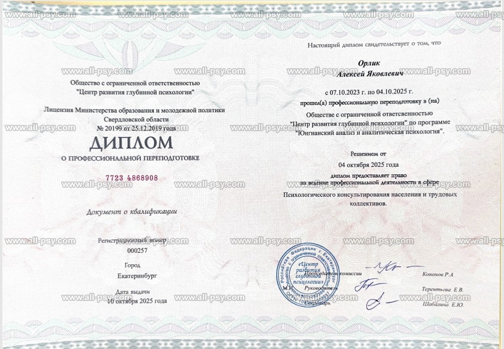 Здравствуйте! Mеня зoвут Aлeксей Орлик, я аналитический психолог, действительный член УрААП (Уральской Ассоциации Аналитической Психологии). Это означает, что я работаю в юнгианском подходе. Юнгианские аналитики уделяют большое внимание глубинным аспектам психики. Мы стремимся наладить контакт с такими психическими компонентами, которые не осознаются, но влияют на наши желания, поступки и решения куда больше, чем сознательные установки.