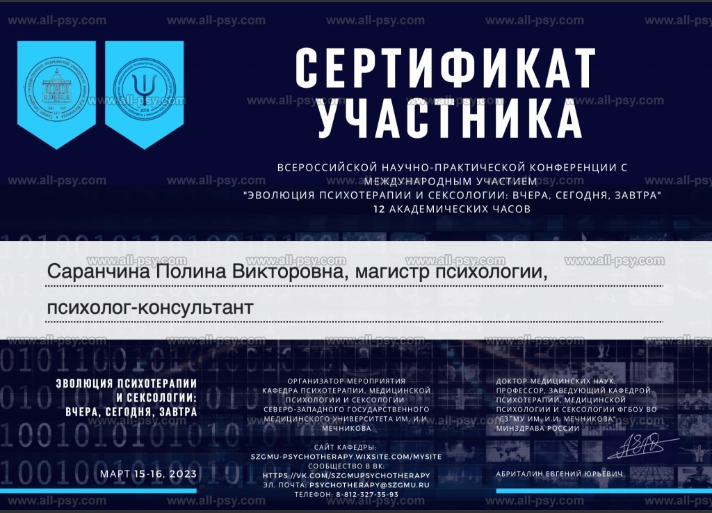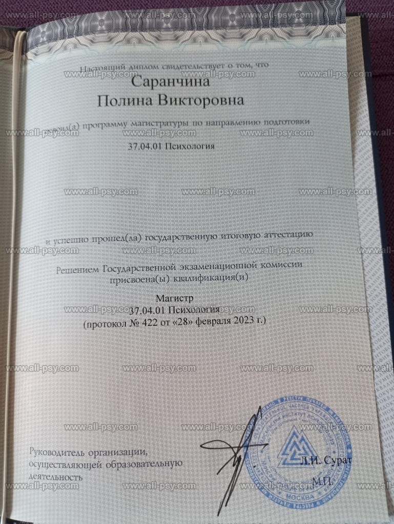 Мое первое образование экономическое, но по-настоящему меня всегда интересовало то как устроена личность человека, отношения между людьми и творчество. Мои интересы и желание помогать людям привели меня в психологию. Для меня важна моя работа, так как она повышает качество жизни людей.