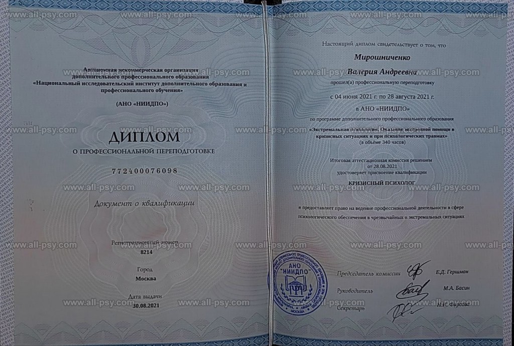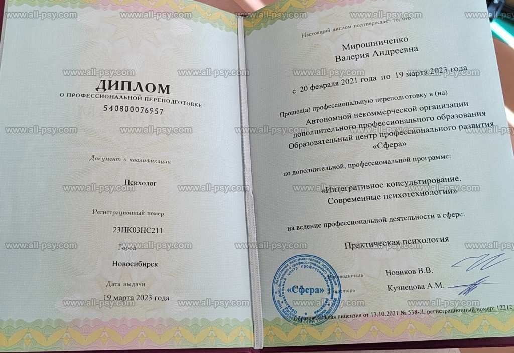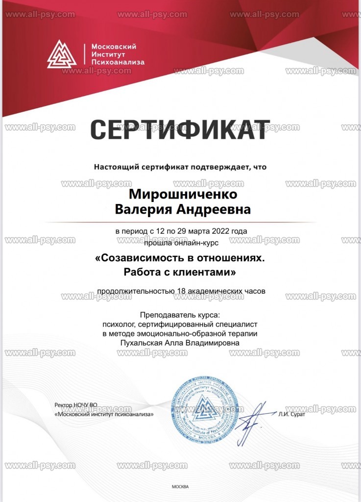 Здравствуйте, меня зовут Валерия Мирошниченко и я практикующий психолог, немедицинский психотерапевт гуманистического направления.