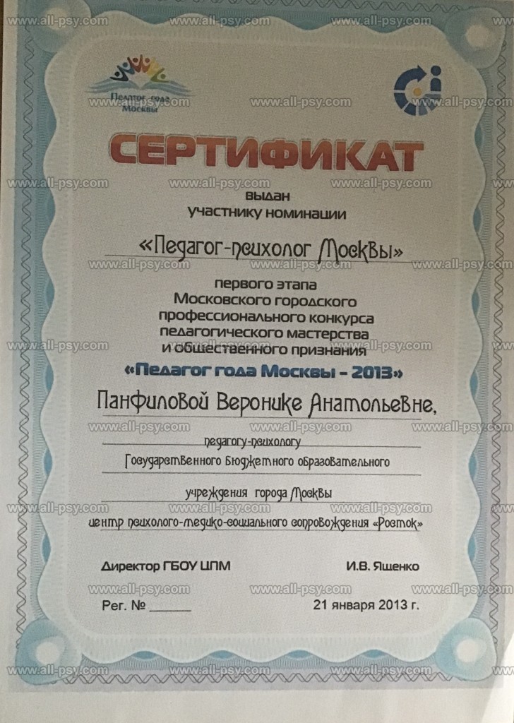 - Участник номинации «Педагог- психолог» Москвы