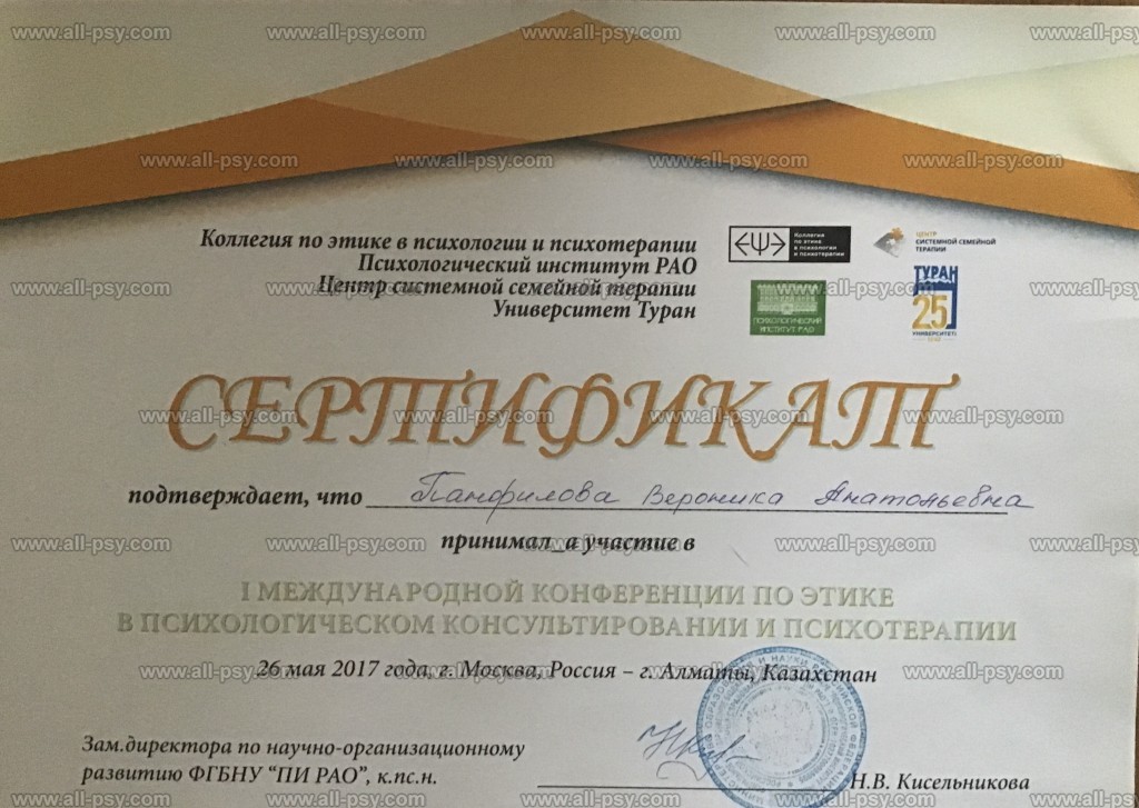 - Международная конференция по этике в психологическом консультировании и психотерапии
