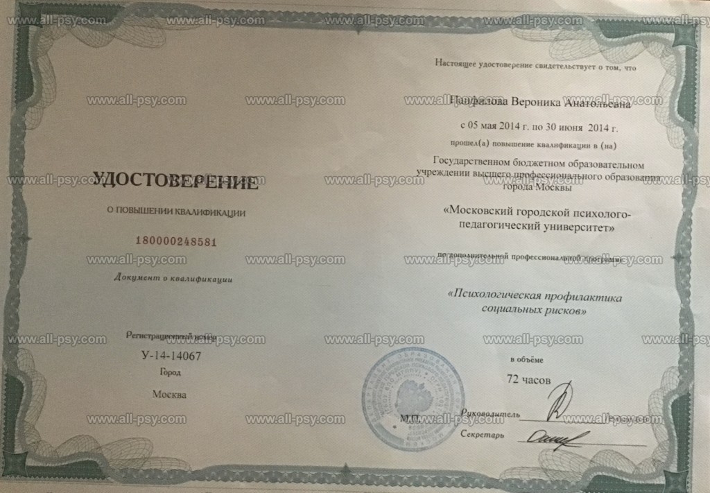 Я - клинический психолог, профессиональный член АТДТ, Москва, член Российской арт- терапевтической Ассоциации. Мой опыт в профессии более 15 лет. Имею длительный опыт личной терапии и регулярные супервизии.