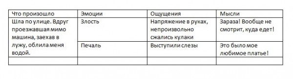Телесная реакция («сжались плечи», «пересохло в горле», «заметил, что хожу из угла в угол»).