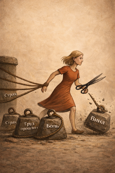 Метафорически это похоже на попытку идти вперёд, удерживая рукой дверь, которая давно закрыта. Сколько бы ни было усилий — движения не происходит. И только отпуская эту дверь, человек впервые чувствует: у него есть возможность сделать шаг.